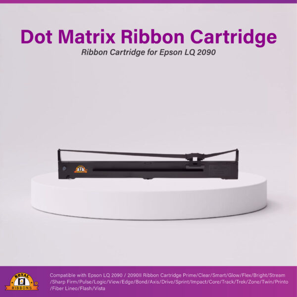 Registry-grade dot matrix ribbon for Epson LQ-2090 and FX-2175, compatible with S015335. Smooth indexing and reduced ink bleed for invoices, ledgers, and banking documents.